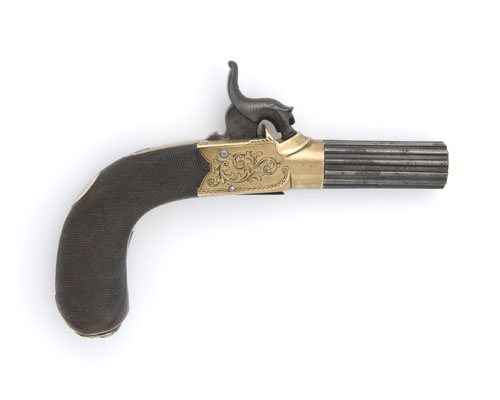ARCHBOLD, CARLISLE A 50-BORE BRASS-FRAMED BOXLOCK PERCUSSION POCKET PISTOL,