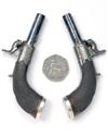 A FINE PAIR OF .25 RIFLED PERCUSSION SILVER MOUNTED BOXLOCK POCKET PISTOLS OF SMALLER THAN USUAL SIZE