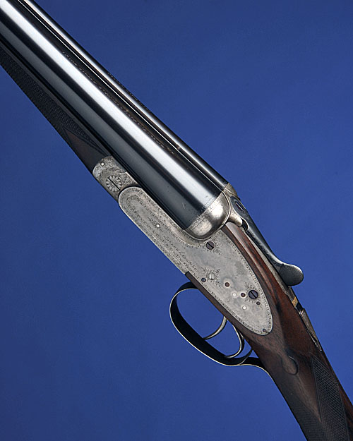 28in. nitro barrels, tubes engraved 'JOSEPH LANG & SON. 7, BURY STREET. ST. JAMES'S. LONDON. ENGLAND.', 2 1/2in. chambers, bored approx. 1/4 and 1/2 choke, automatic safety with gold-inlaid 'SAFE' detail, cocking-indicators, border engraving, retaining slight traces of original colour-hardening (some external pitting)14 1/4in. figured replacement stock, weight 6lb. 14oz.