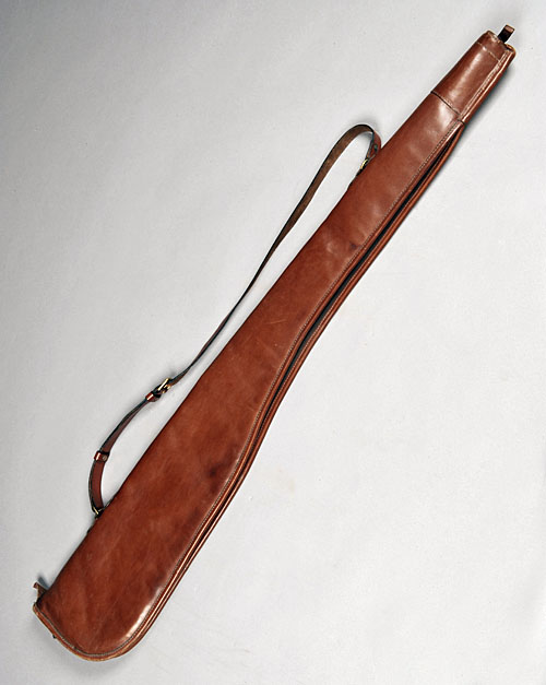 JAMES PURDEY & SONS LTD. A LITTLE USED HEAVY LEATHER TAN GUNSLIP,
