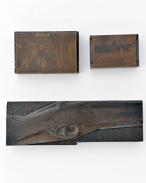 JOSEPH LANG & SON LTD. THREE COPPER AND WOOD PRINTING BLOCKS,