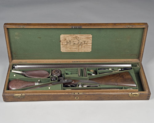AN EXCEPTIONAL, CASED 15-BORE BEST QUALITY DOUBLE-BARRELLED PERCUSSION SPORTING GUN, serial no. 5832,