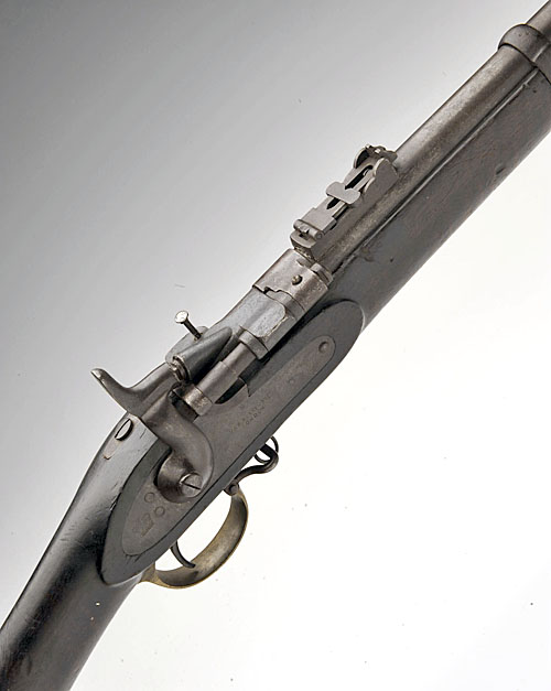 * A .577 (SNIDER) SINGLE-SHOT BREECH-LOADING RIFLE SIGNED 'V&B BLAKEMORE', serial no. L47G , with 36 1/2in sighted barrel, lock signed 'V&G BLAKEMORE, LONDON' together with a crown cypher, walnut half-stock (shortened at the forend), two iron barrel-bands, iron-work cleaned and stained, small losses throughout