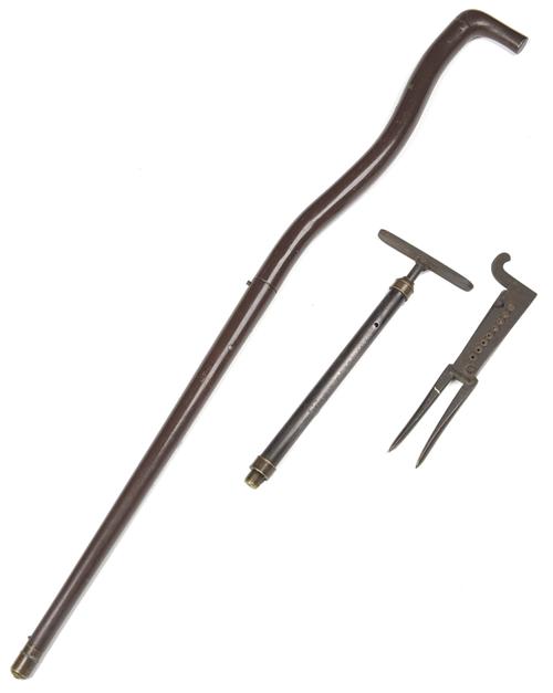 A SCARCE .32/.44 CALIBRE CRANKED-STOCK MUZZLE LOADING AIR CANE, no visible serial number