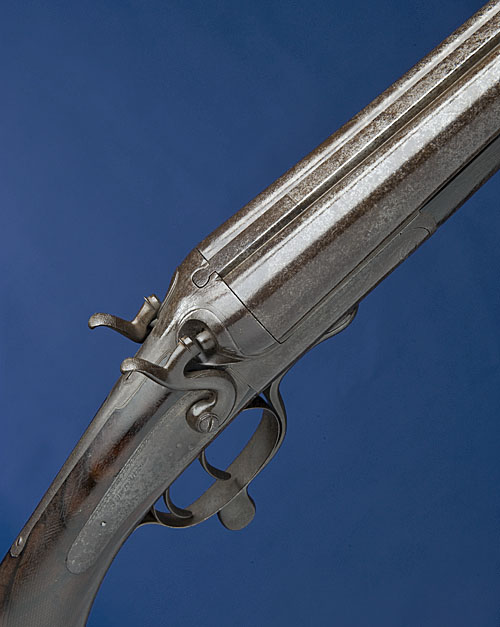 A 10-BORE (2 5/8IN.) DOUBLE-BARRELLED ROTARY-UNDERLEVER HAMMERGUN, no visible serial number,