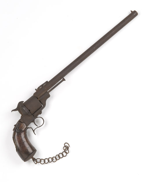 A RELIC 12mm PINFIRE SIX SHOT REVOLVING CARBINE, no visible serial number,