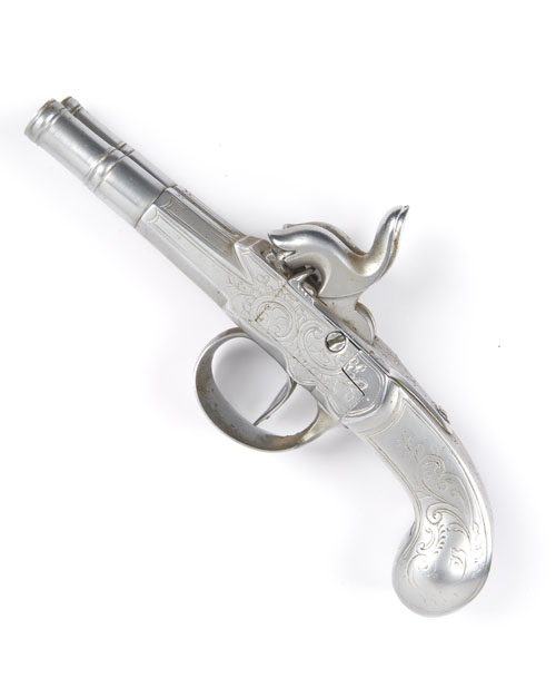 * AN UNUSUAL CONTINENTAL 120-BORE DOUBLE-BARRELLED ALL METAL PERCUSSION BOXLOCK POCKET PISTOL