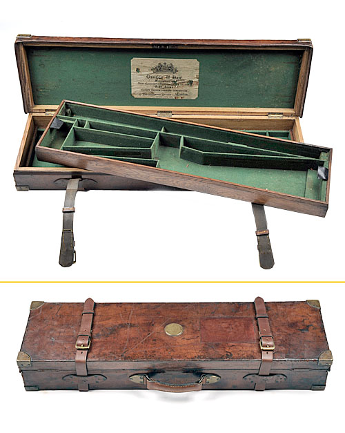 fitted for 30in. barrels, lined with green baize, makers label