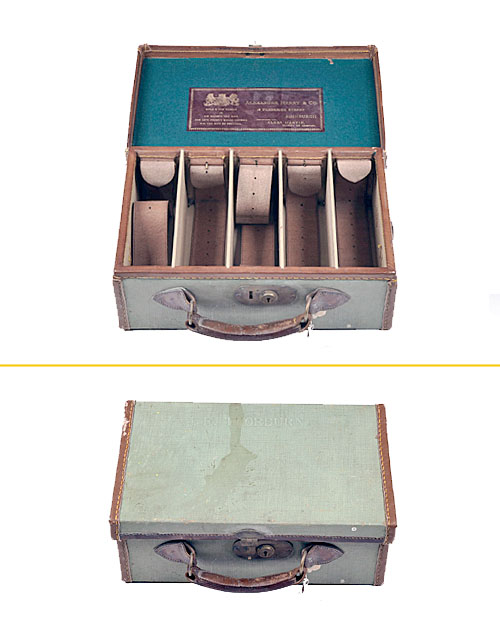 for approx. 300 cartridges, original dividers and lifters all present, brass lock (including key), carrying a Alexander Henry Trade Label 18 frederick St Edinburgh, with the monogram R. THORNBURN to the outer lid.