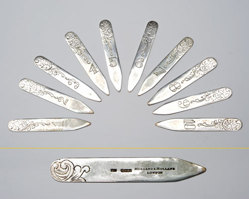 HOLLAND & HOLLAND A SET OF TEN STERLING SILVER PLACEFINDERS,