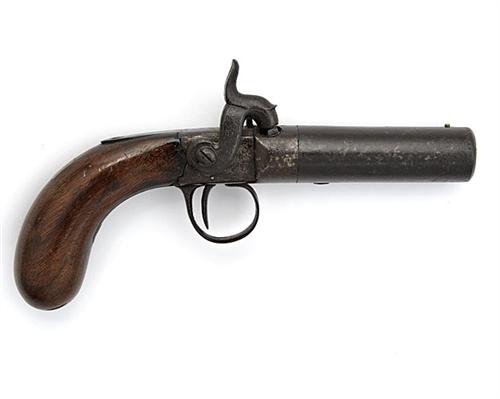 A SCARCE 16-BORE 'MAN-STOPPER' BOXLOCK PERCUSSION POCKET PISTOL