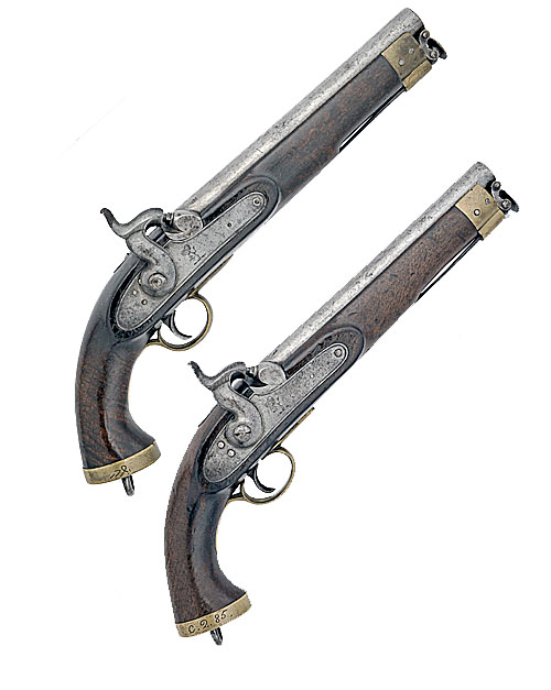 A COMPOSED PAIR OF .650 (REGULATION) PERCUSSION PISTOLS FOR THE EAST INDIA CO.