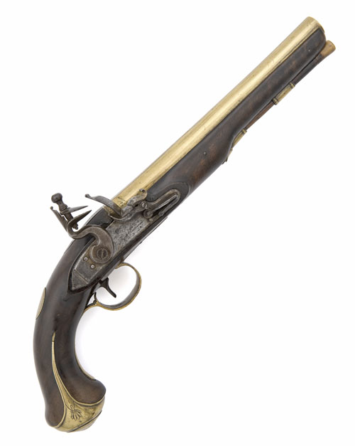 A RARE 18-BORE BRASS-BARRELLED FLINTLOCK OFFICERS PISTOL SIGNED THEOP. RICHARDS