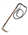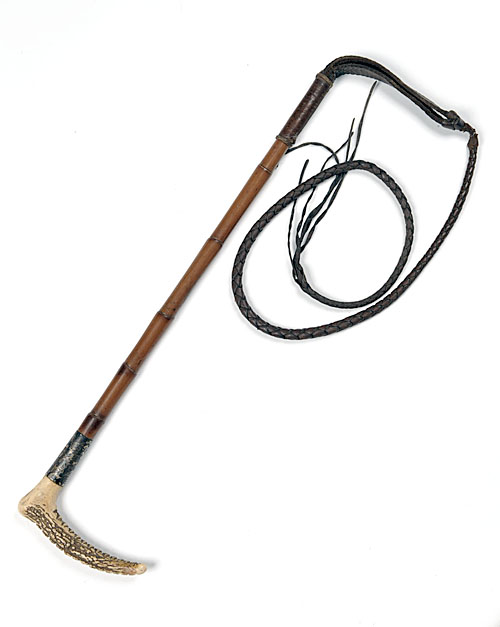 A SILVER-MOUNTED LADY'S HUNTING WHIP BY BRIGG, stag antler handle with bamboo shaft, leather keeper and thong, the silver band engraved 'T.A.P. 1922'