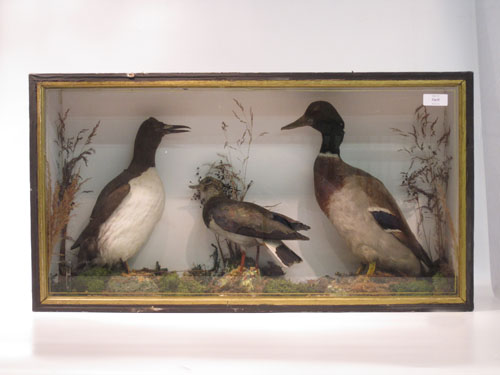 THREE CASED BIRDS IN THEIR NATURAL HABITAT, including a Gillemot, Greenplover & a mallard duck
