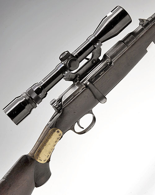 ** STEYR .256 (RIMLESS) 'MANNLICHER SCHOENAUER M.1903' BOLT-MAGAZINE SPORTING RIFLE RETAILED BY WILLIAM EVANS, serial no. 17695 / 14884, 23 1/2in. nitro barrel engraved 'WILLIAM EVANS. 63. PALL MALL. LONDON.', with ramp-mounted bead fore-sight, rear-sight of one standing and one folding leaf, fitted with a Bushnell 4x32 telescopic sight in quickly-detachable side-mounts, 14 1/2in. pistolgrip stock (extensive repair at hand, woodwork generally worn)