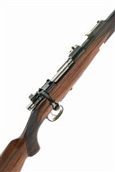 ** MAUSER 6.5X57 BOLT-MAGAZINE SPORTING RIFLE, serial no. 96616, circa 1920, 25 3/4in. nitro reproved replacement barrel (in 2025), with tangent rear sight graduated from 50 to 1000 metres, ramp-mounted bead foresight, receiver (with thumb cutout) tapped for telescopic sight bases, lever type hinged floorplate, figured three-quarter length pistolgrip stock with 14 1/4in. pull, chequered grip and fore-end, cheekpiece, blued steel pistolgrip-cap, sling swivels and Mauser horn buttplate, small insert repair to toe, stock with circular escutcheon engraved 'M', weight 7lb. 6oz.