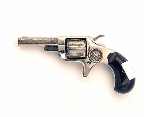* A .22 (SHORT) SEVEN-SHOT SINGLE-ACTION POCKET REVOLVER SIGNED 'COLT', MODEL 'NEW LINE', serial no. 2406/ W2135, for first year of production 1873, with nickel-plated 2 1/4in. barrel, fluted cylinder and frame, birds-head rose-wood grips and blued screws, additional South African registration number to right hand side of barrel