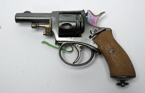 * A .320 (SHORT REV.) FIVE-SHOT DOUBLE ACTION REVOLVER, UNSIGNED, serial no. 37, circa 1885, German proved with 2 1/4in. sighted barrel, blind fluted cylinder, chequered walnut grips with iron butt-cap and lanyard ring, swing out ejector-rod, much finish throughout