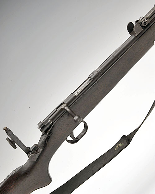 B.S.A. .22 'WAR OFFICE PATTERN MINIATURE RIFLE' BOLT-ACTION TRAINING RIFLE, serial no. 1113, 23 3/4in. nitro sighted barrel, stock fitted with flip-up peep sight at the wrist