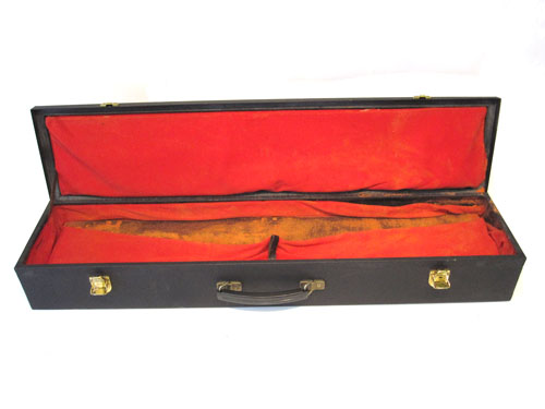 BLACK METAL GUNCASE, lined with red baize that needs attention. Estimate £10-20