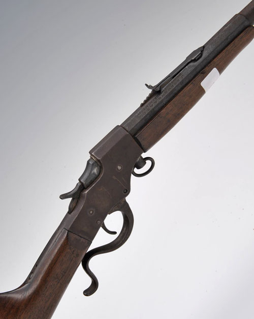 A .22 (LR) SINGLE-SHOT UNDER-LEVER TAKE-DOWN RIFLE SIGNED STEVENS, serial no. 511, with two-stage 22in. barrel, iron receiver, walnut stock and forend, external iron surfaces corroded