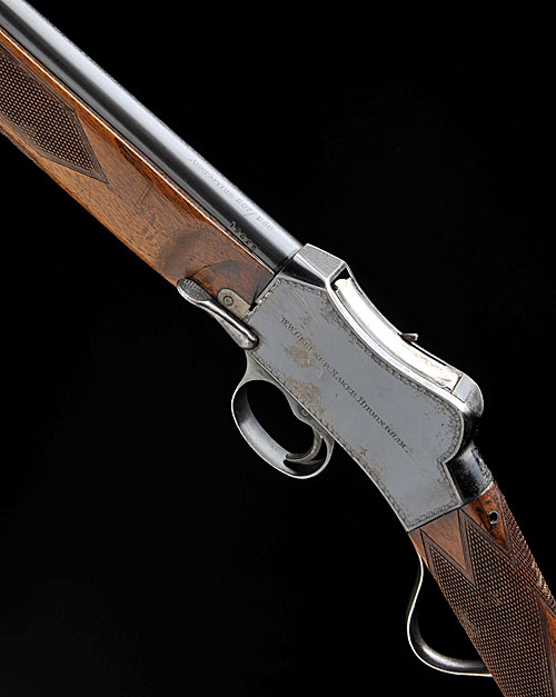 circa 1910, with blued, sighted 26in. barrel signed 'W. W. GREENER MAKER 29 PALL MALL LONDON. WORKS ST MARYS SQUARE, BIRMINGHAM' together with the ammunition designation, border engraved, blued receiver signed W. W. GREENER, MAKER BIRMINGHAM, take-down lever on the left hand side, walnut butt-stock chequered at the wrist, chequered beaver-tail forend and eyelet for sling mounted on barrel, the whole retaining a good proportion of original finish