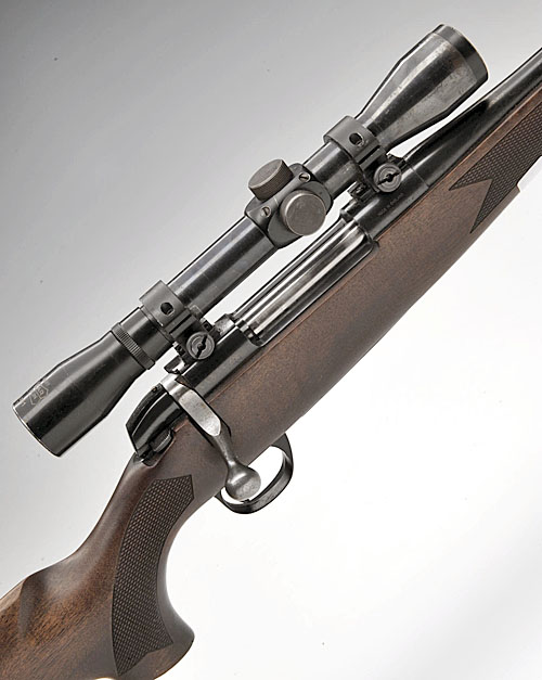 B.S.A. .222REM. BOLT-MAGAZINE STUTZEN SPORTING RIFLE, serial no. 2R8103, 20 1/2in. unsighted nitro barrel, receiver mounted with a Pecar 4x81 telescopic sight, horn finial broken