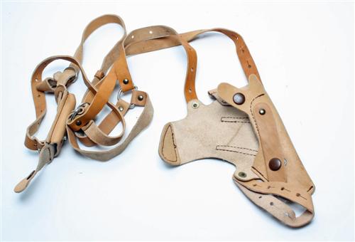 THREE LEATHER SHOULDER HOLSTERS, PSM 5.45mm pistol Estimate £20-30