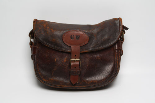 A USED PIG SKIN CARTRIDGE BAG, medium size for approx. 100 cartridges Estimate £30-50