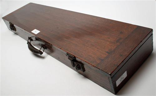 A WOODEN GUNCASE, fitted for 30 1/2in. barrels, relined with green baize Estimate £30-50