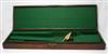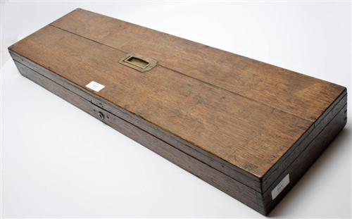 A WOODEN GUNCASE, fitted for 32in. barrels, relined & re-boxed (boxing not finalized), green baize, brass central lock (including key)