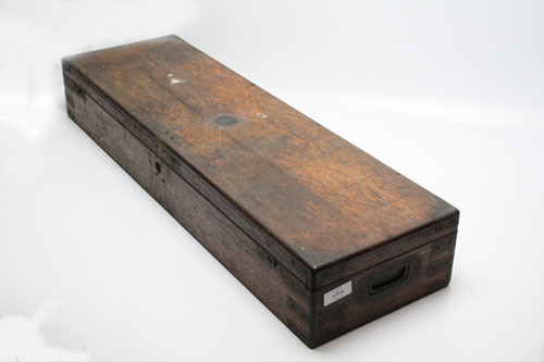 AN OAK TWO TIER GUN CASE, interior missing, shelf missing Estimate £50-70
