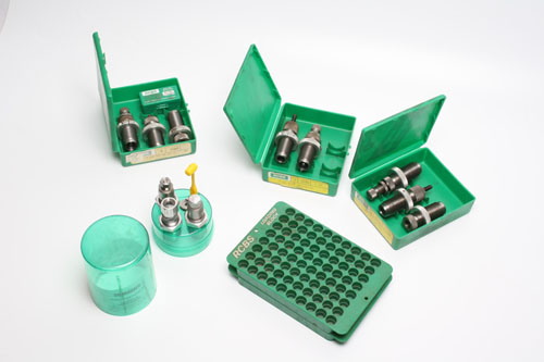 FOUR SETS OF R.C.B.S. RELOADING DIES, including RCBS 3 die set 45 ACP RN, RCBS 3 die set 45 Colt RN, RCBS 3 die set 44 mag SWC, Lee 30 Mauser reloading dies, 2 trays of RCBS loading blocks