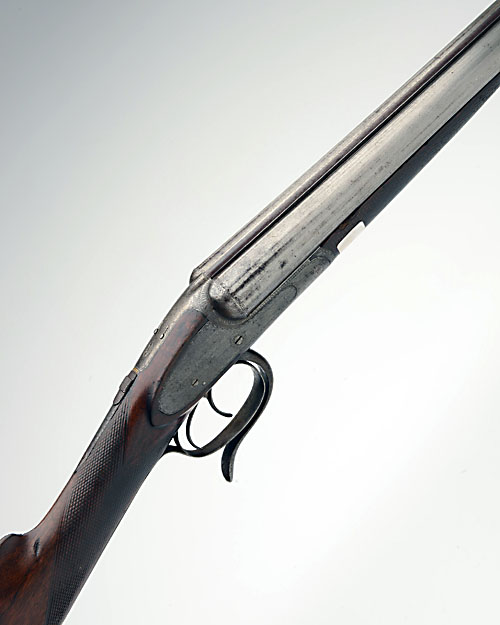 * ADAMS & CO. 12-BORE 'THE ACME' THOMAS WOODWARD 1876 PATENT 'SPIRAL SPRING WOODWARD' PUSH-FORWARD UNDERLEVER SIDELOCK NON-EJECTOR, serial no. 12635, pre 1887, 28in. nitro reproved damascus barrels (struck off), rib engraved 'ADAMS & CO. 32 FINSBURY PAVEMENT. LONDON.', 2 3/4in. chambers, bored approx. imp. cyl. and 3/4 choke, Thomas Woodward patent hammerless push-forward-underlever snap action, patent 651 of 17th February 1876, use no.1105, cocking indicators, automatic safety with gold-inlaid 'SAFE' detail,border engraving, 14 1/2in. stock with steel heel and toe plates
