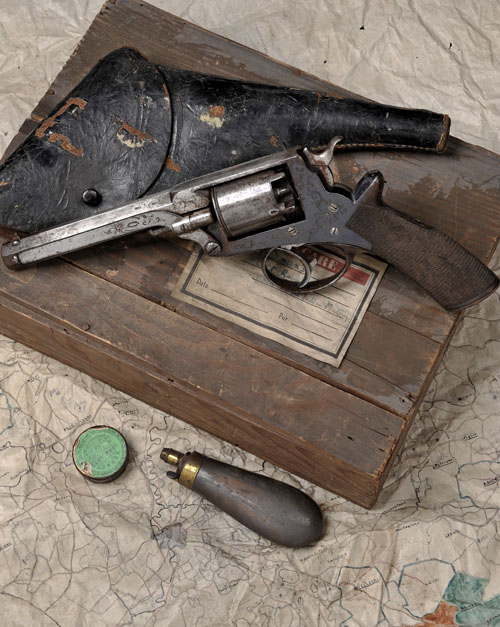 Provenance: The vendor states that this revolver was used by the vendors Great Grandfather, Charles Philip Austin Oman (1825-1876), who was a planter at the time of the Indian Mutiny. It was subsequently discovered by the vendors father in his fathers effects in 1946 in the pine box offered here wrapped in the hand drawn map of Italy