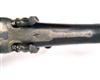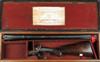 28in. black powder only barrels with matt sight-rib, open sights and engraved 'EDWINSON GREEN & SON. MAKERS. CHELTENHAM & GLOUCESTER', Jones patent rotary-underlever, treble-grip action, carved percussion fences, rebounding back-action locks, border and fine acanthus scroll engraving, surrounding scenes of prowling tiger and lion, retaining slight traces of original colour-hardening, 14 1/2in. well-figured semi-pistolgrip stock including heel and toe plates, pistolgrip inset with a semi-precious stone, replacement fore-end wood, weight 10lb. 3oz., in an oak-lined leather case, the lid impressed 'A.W. CHITTY', together with sighting target