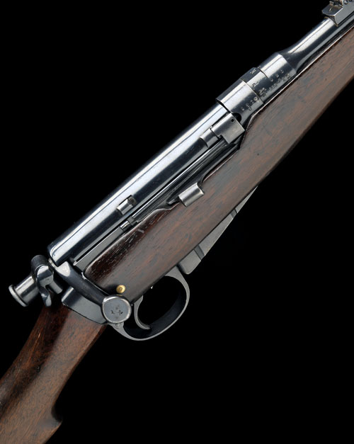 dated for 1900, with 21in. barrel, muzzle-cap with built-in fore-sight protector, elevating adjustable rear-sight, 'Lee-Metford' style bolt with dust-cover and turned-down flatterned handle, magazine cut-off, wrist of action stamped 'ENFIELD 1900 LEC 1*' together with a crown over 'VR', walnut full-stock, the butt with brass heel-plate, trap-door for oil-bottle and pull-through (missing), the side of butt marked with brass disc stamped 'K.A.20', the wood stamped 'K.A.' over 'I. G.' (separated by a broad arrow) over 'I', the fore-stock with three-quarter length walnut barrel cover and short six-round magazine attached to the rifle via a security chain, the whole remaining in good condition throughout with much original finish