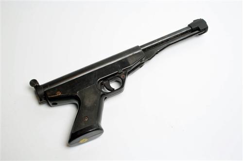A .177 UNDER-LEVER AIR-PISTOL SIGNED GAMO, MODEL FALCON, serial no. 0515722, with 7 1/4in. barrel, tap-loading, black plastic stock (some surface corrosion)