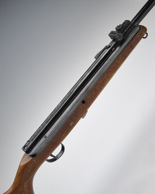 A .22 SIDE-LEVER AIR-RIFLE SIGNED WEBLEY & SCOTT, MODEL OSPREY, serial no. 0743 circa 1975, with 19in. blued barrel, tap-action loading and plain beech stock (some wear to wood-work and mild speckling to bluing)