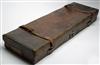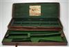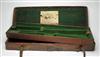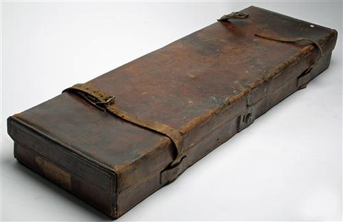 A TWO TIERED PHILIP HAST LEATHER GUNCASE, fitted for 30in. barrels, lined with green baize, brass lock (latch & key missing),