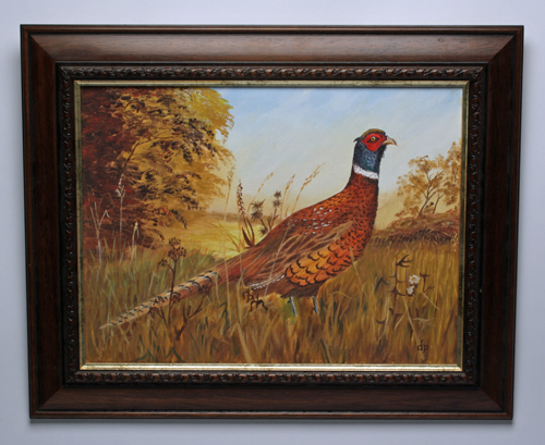 A FRAMED CANVAS OF A COCK PHEASANT Estimate £20-30