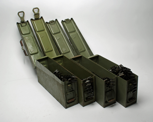 A SET OF FOUR GERMAN AMMUNITION CASE FOR A MG 34/42 WITH METAL LINK BELTS