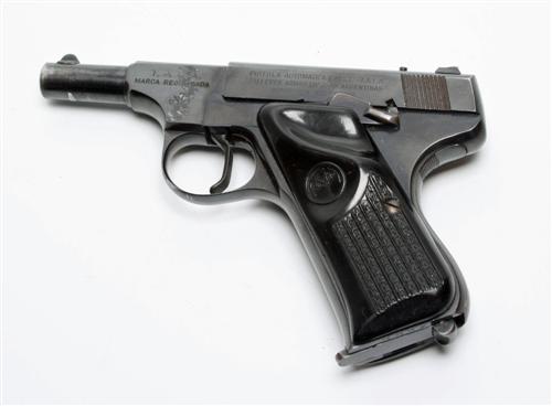 A .22 (LR) SEMI-AUTOMATIC PISTOL SIGNED T.A.L.A., serial no. 3354, of post-war Argentinian manufacture, with 3in. blued barrel (proved 2011), blued frame and slide and black plastic grips