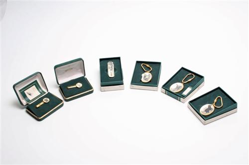 A QUANTITY OF SIX UNUSED BARLOW PRODUCTS, including three game scene keyrings, two game scene tie clips and a game scene pen knife