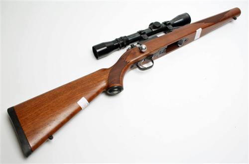 THE STOCK AND ACTION ONLY OF RUGER .17HMR 'MOD. 77/17' BOLT-MAGAZINE SPORTING RIFLE, serial no. 702-84288, receiver mounted with a Pecar Variable 3-7 telescopic sight