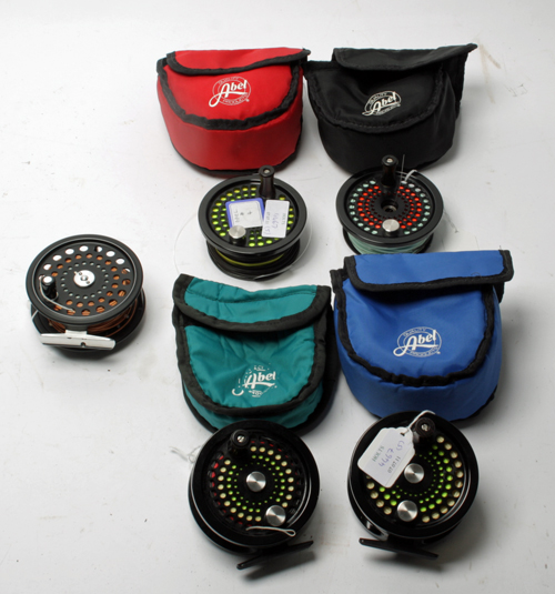A NUMBER OF SALMON FISHING REELS, including an Abel No. 3 with spare spool, an Abel No. 4 with spare spool & a House Of Hardy 'ultralite disc salmon' reel