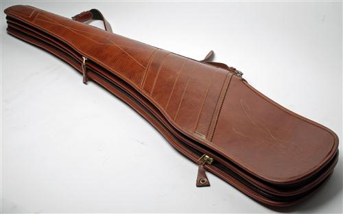 AN ABEL TAN LEATHER FLEECE LINED DOUBLE GUNSLIP Estimate £100-150