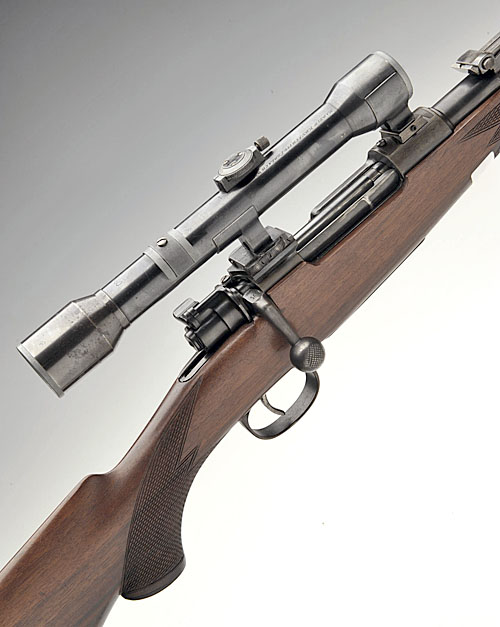 MAUSER 9.5x57 BOLT-MAGAZINE SPORTING RIFLE, serial no. 56147, 25in. nitro barrel with ramp-mounted bead fore-sight, rear tangent sight, fitted with a Kahless H/4x60 telescopic sight engraved 'MARTIN KRUSCHITZ - FERLACH - WIEN', in quickly-detachable mounts, 13 3/4in. pistolgrip stock, leather sling