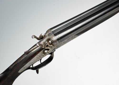 ED. KETTNER 16-BORE / 6.5X48 (SAUER) PUSH-FORWARD UNDERLEVER HAMMER DRILLING, serial no. 5180, 26 3/4in. nitro reproved barrels with raised matt rib, 2 3/4in. shot chambers, bored approx. 1/2 and 3/4 choke, treble-grip action, carver percussion fences, toplever barrel selector, rebounding back-action locks, set front trigger, floral and scroll engraving surrounding naive game scenes of Roe and hare, stag and waterfowl, 14in. semi-pistolgrip stock (insert repairs at head and hand) with cheekpiece, sling eyes and horn buttplate, the stock stamped 'WONG POH SOON HIN NEN CAN TON'